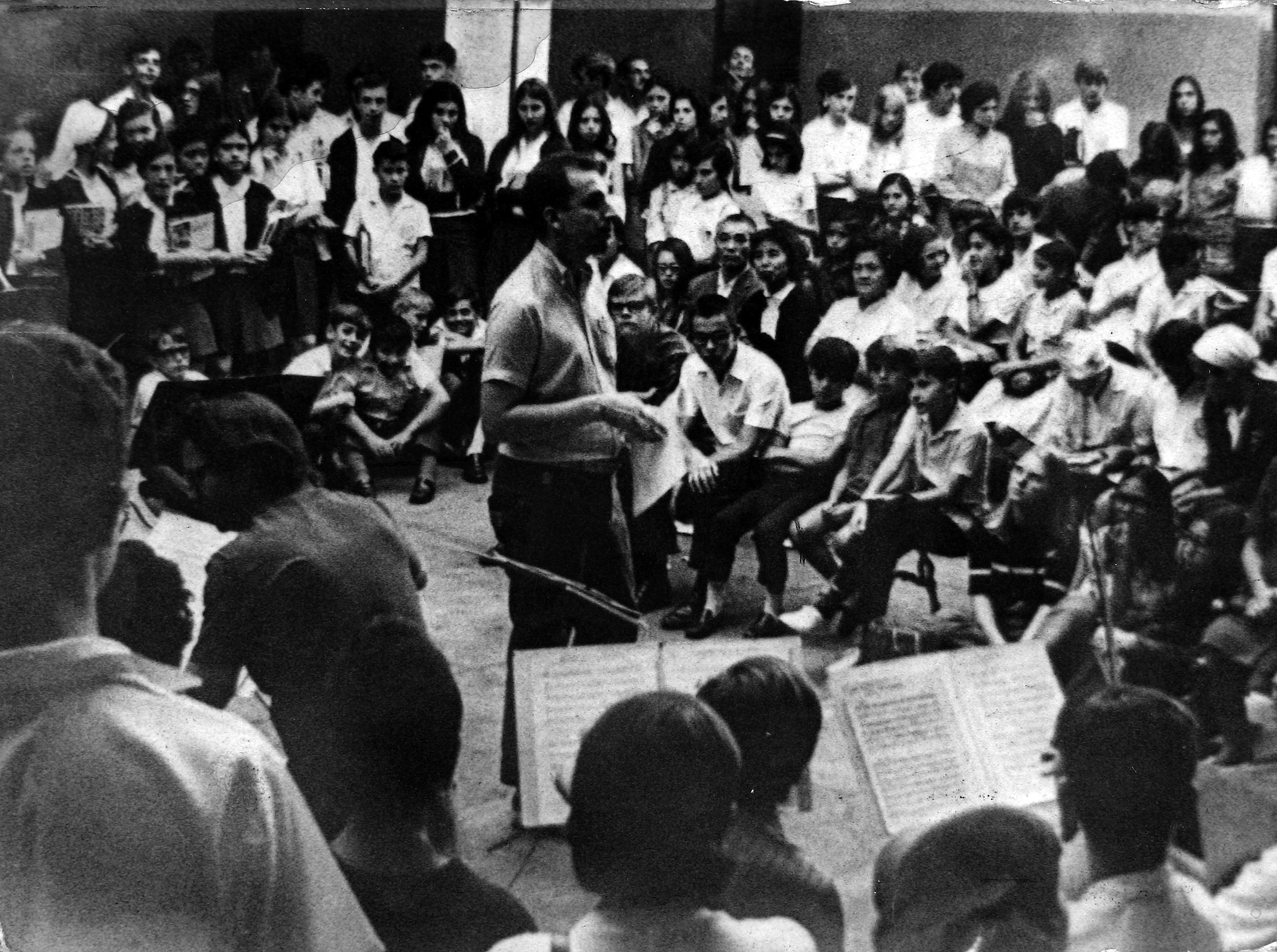 Natural de Itapira, interior de SP, Milton Andrade (1937 -2009), Milton Andrade foi grande entusiasta e articulador da cultura na região do ABC. Formado em Direito e Letras, foi secretário municipal de Cultura e diretor da Fundação das Artes de 1968, ano de sua criação, até 1983. Em 2019, em sua homenagem, o prédio sede da instituição recebeu o nome de “Edifício Milton Andrade”. Na foto (ao centro), Milton Andrade fala com as crianças na Fundação, acompanhado do violinista e maestro Moacyr Del Picchia (à esquerda, de costas).