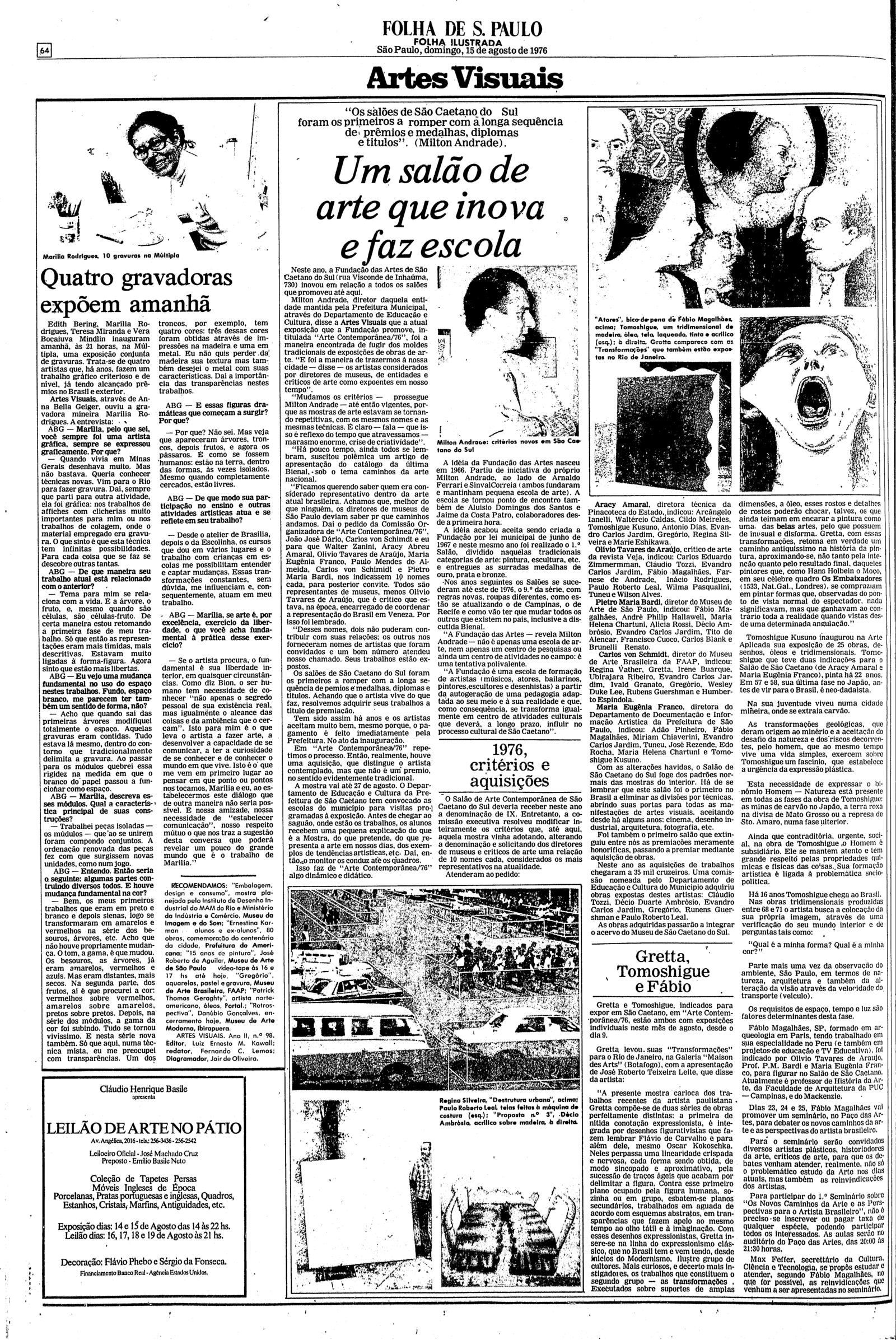 Para marcar a primeira década de atividades, a Fundação das Artes realizou intensa programação ao público. Uma das atrações foi a exposição “Gravuras de Três Gravadores”, valorizando o trabalho de artistas brasileiros, noticiada no Diário do Grande ABC em 31 de agosto de 1978.